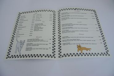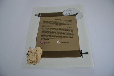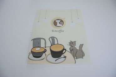 This is a menu design for a cat café. I hand-painted the illustrations of the cats and incorporated cat-scratching lace as a decorative element. The cover design evokes the feeling of a cat playfully seeking the attention of customers. My goal was to create a cheerful and relaxing atmosphere through the design.